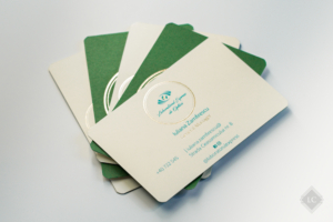 Green-beige luxury business cards with gold foil stamping