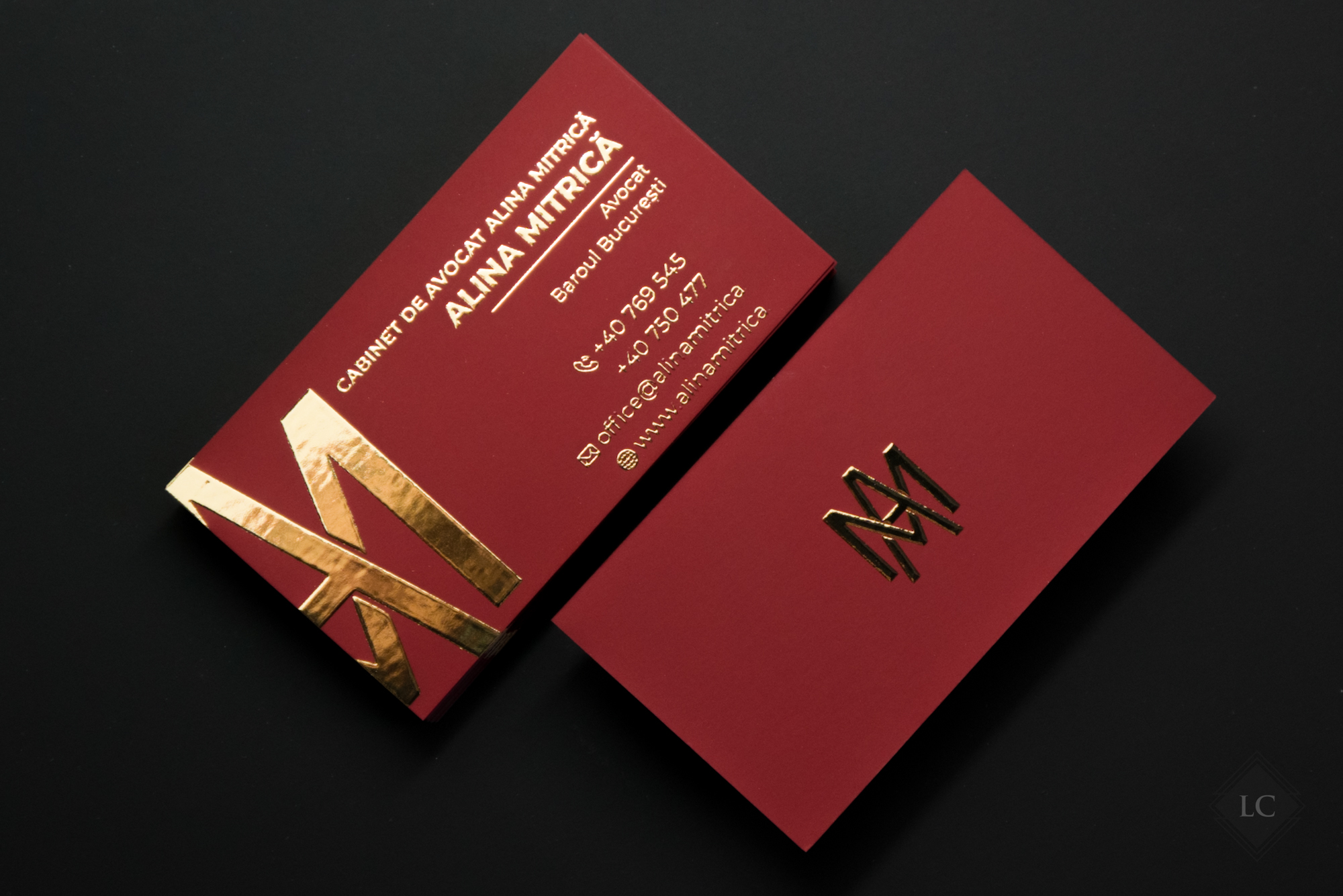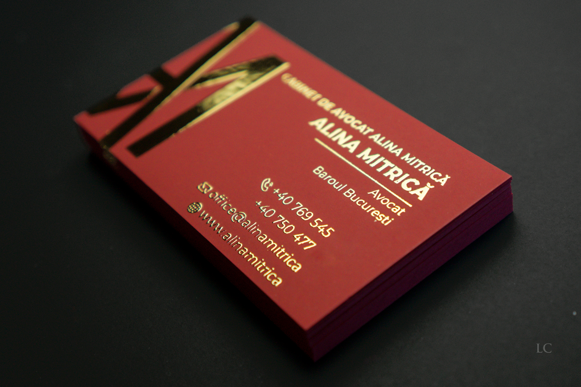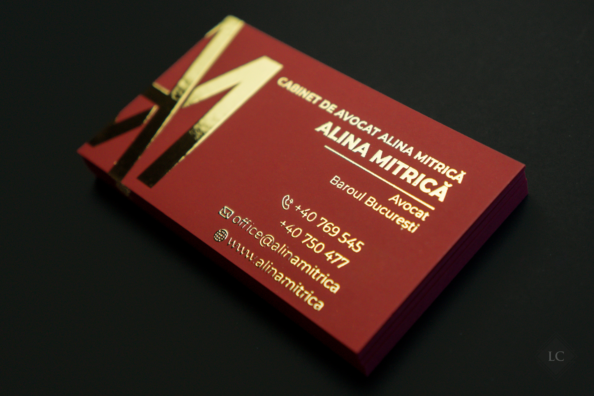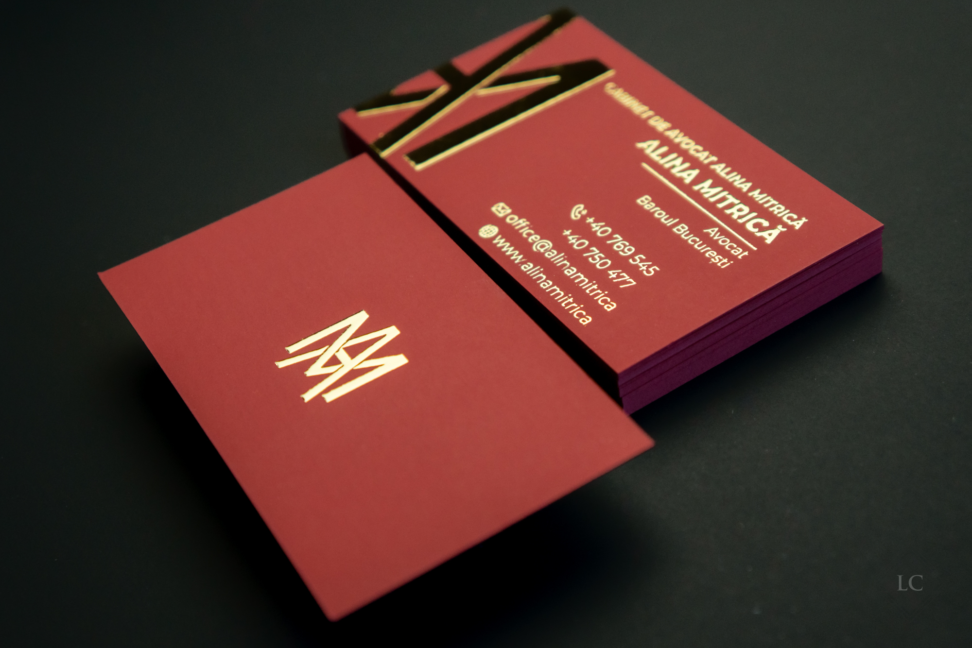 Luxury business cards – Burgundy Cardstock & Raised Gold Foil