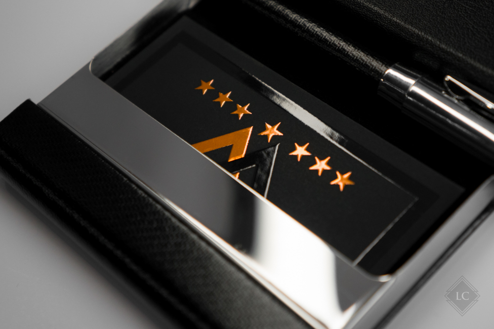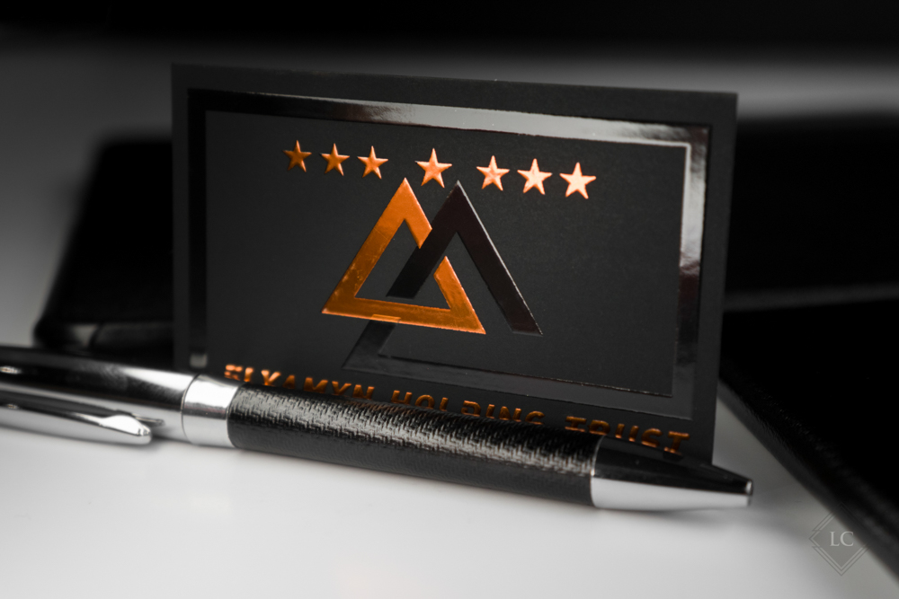Luxury Business Cards – Raised Copper Foil & Spot UV Varnish
