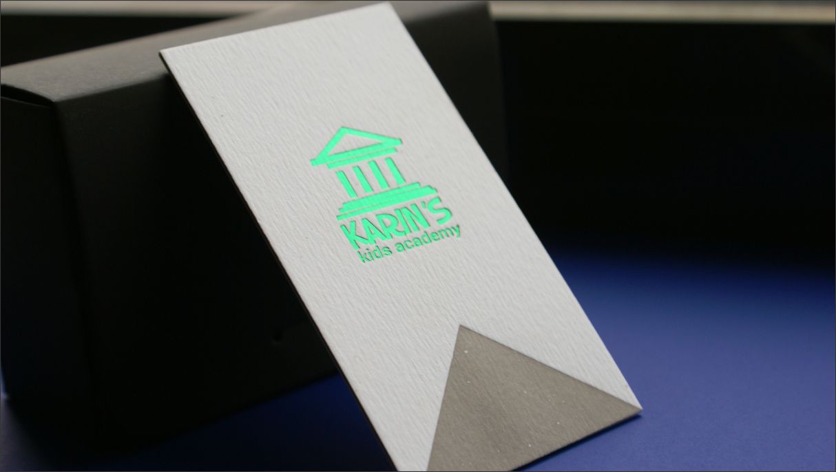 The papers were then bonded into four layers — white, green, grey, white — resulting in one of the most distinctive business cards we have ever produced.
