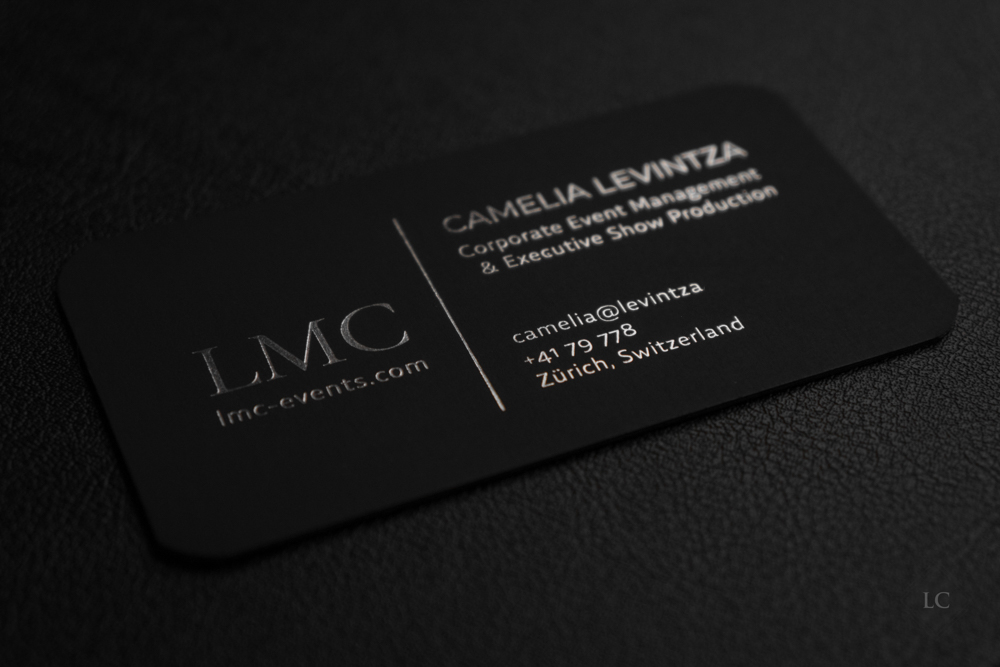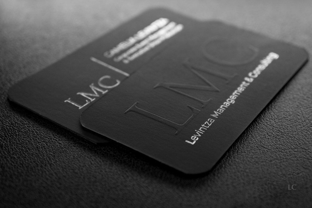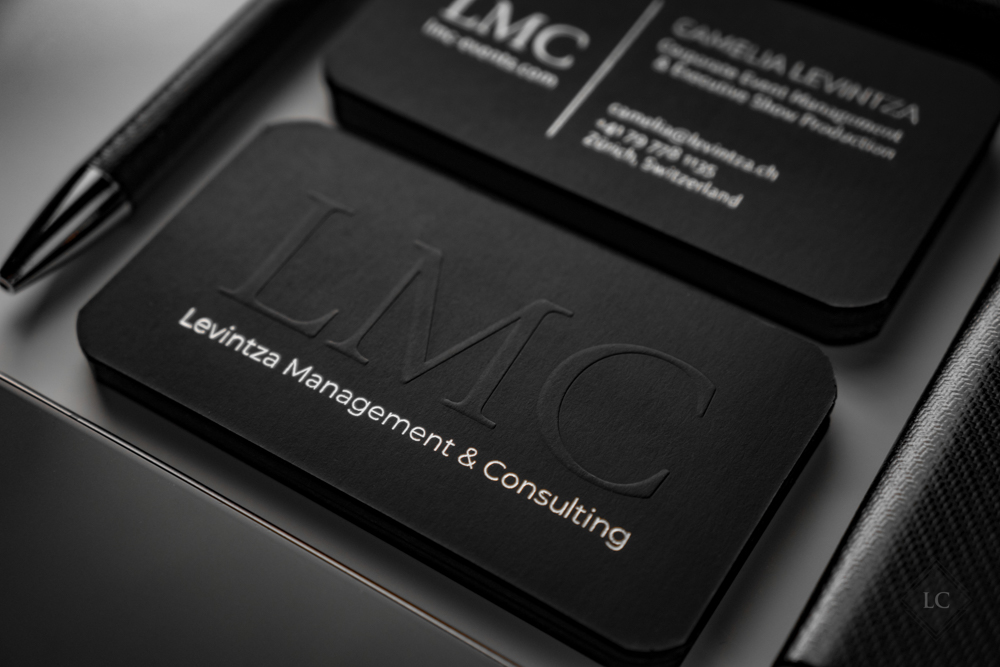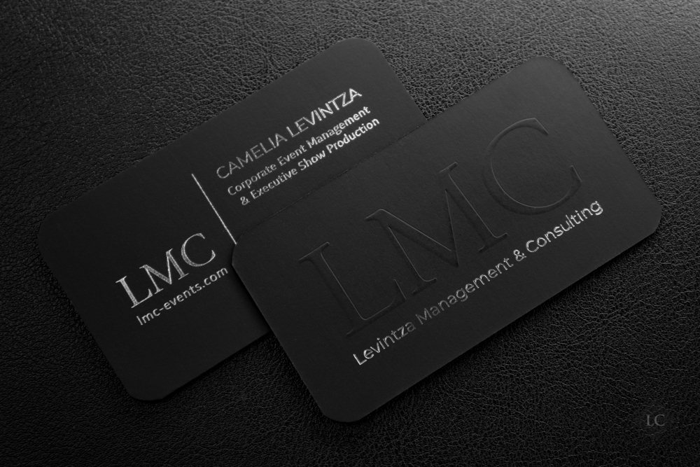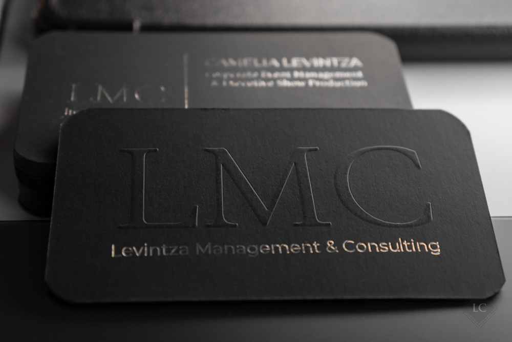 Premium Black Business Cards with Embossed Logo & Silver Foil