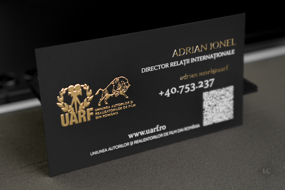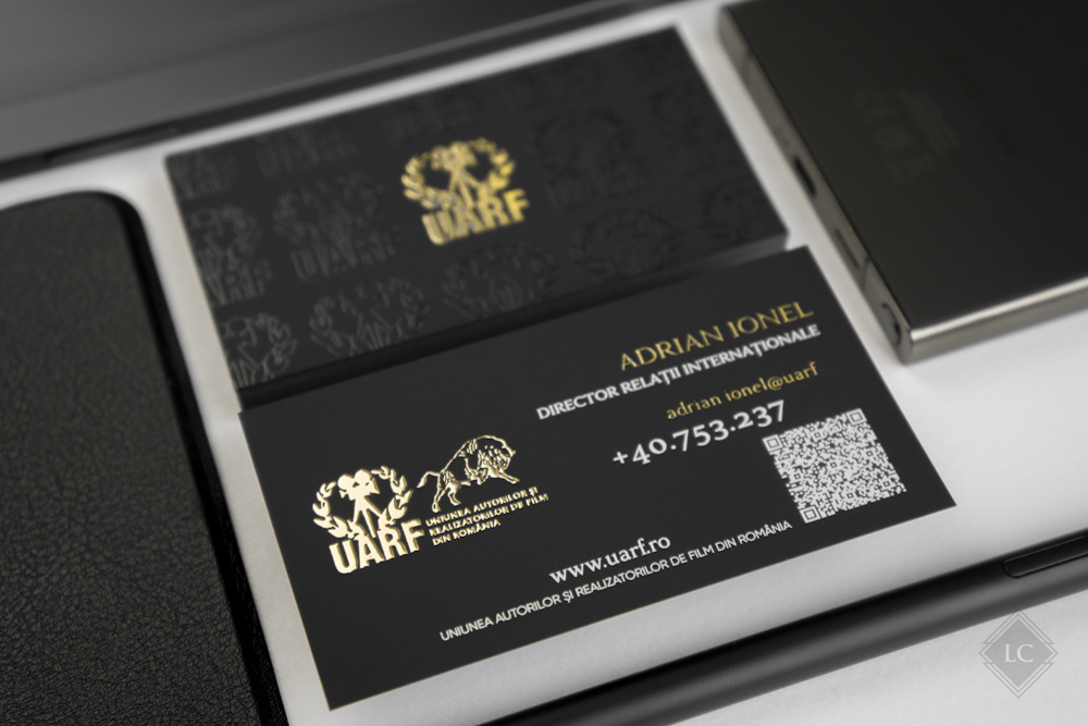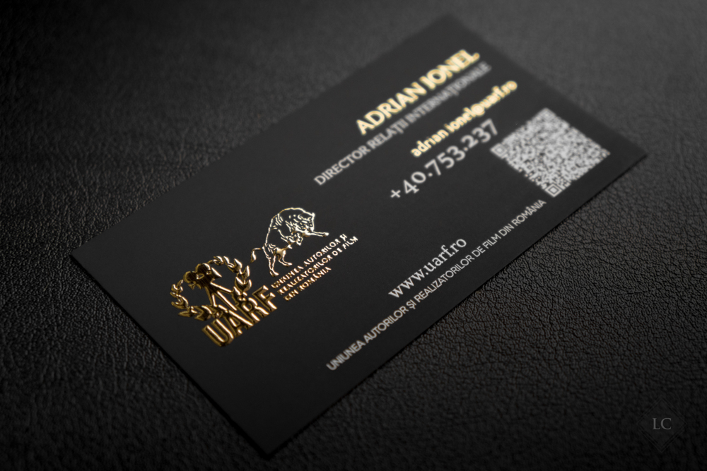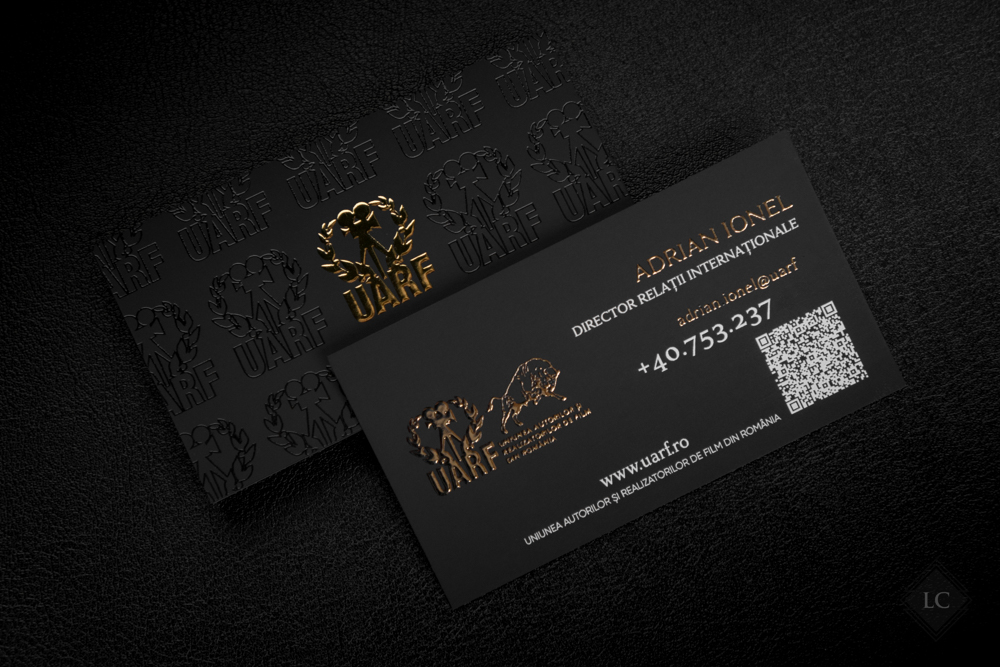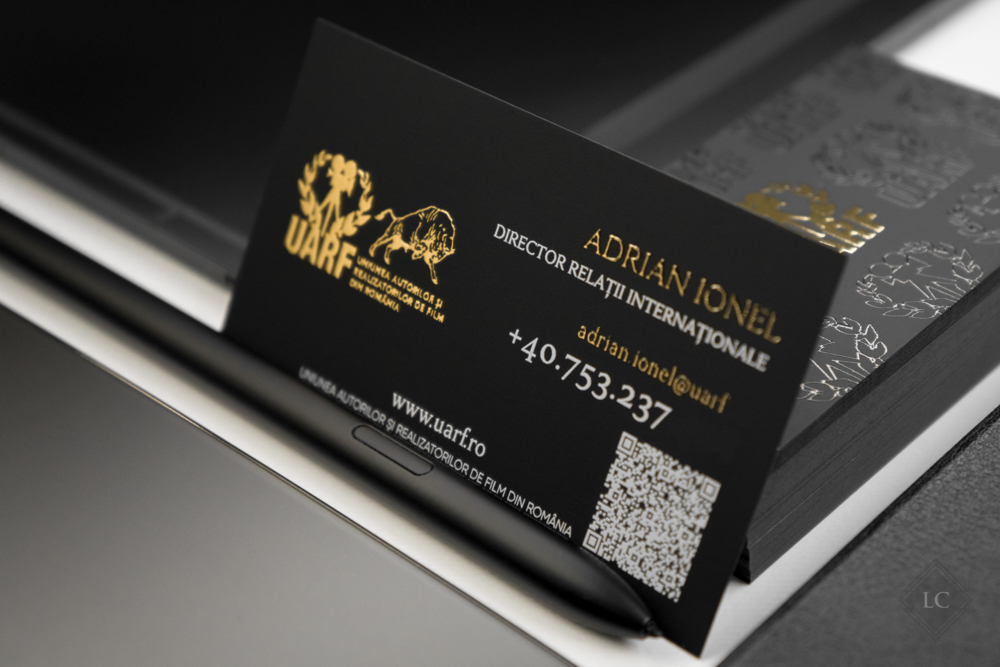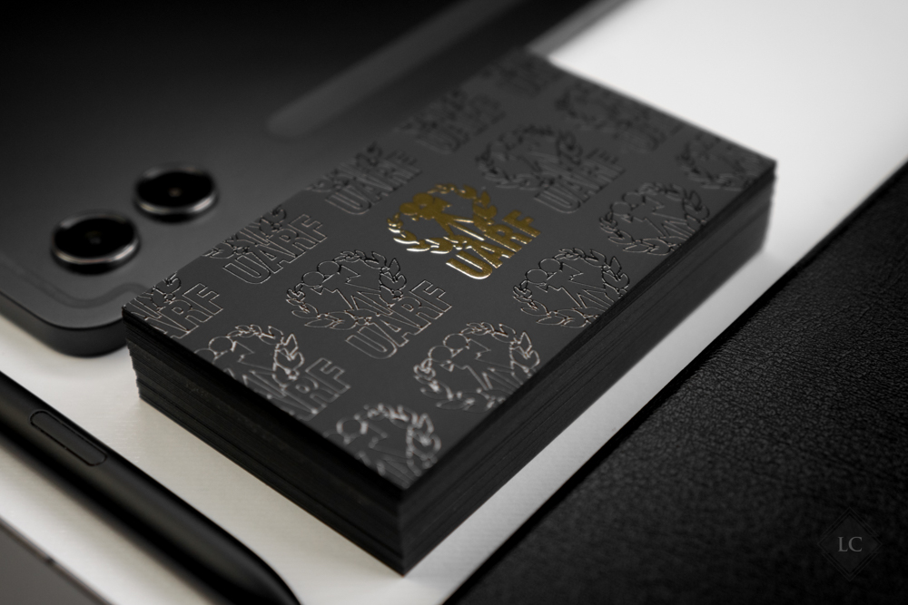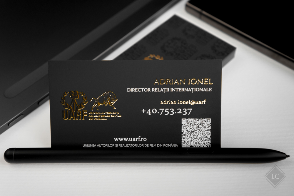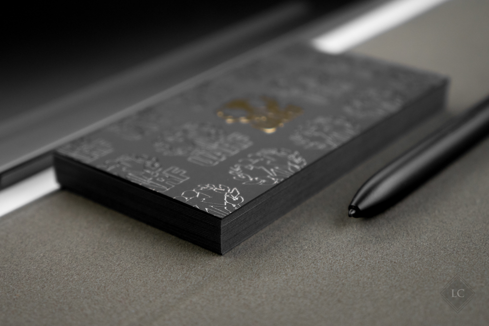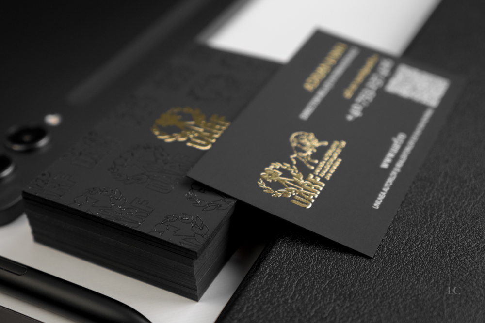 Premium Business Cards – Black Board, Gold Foil & Spot UV