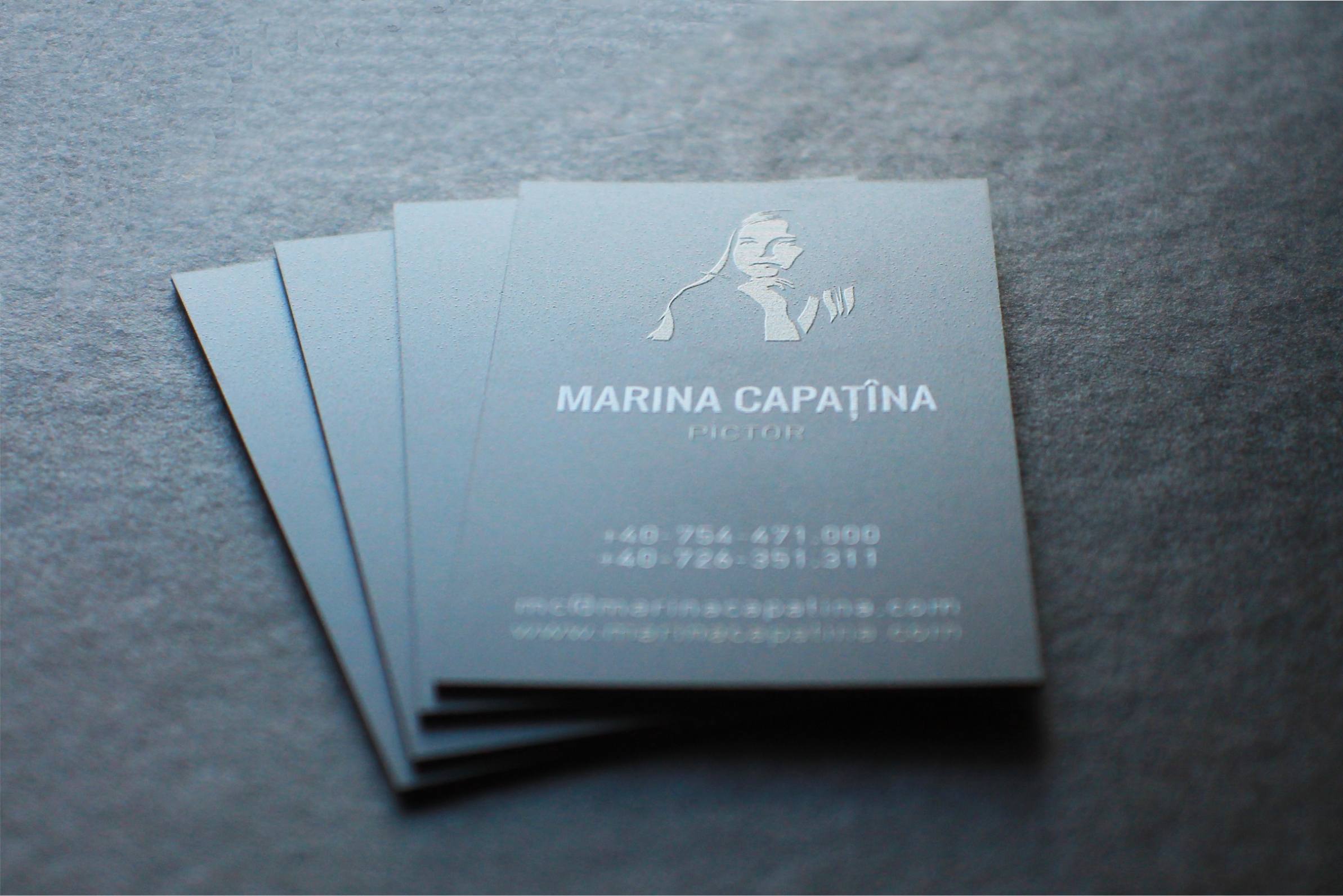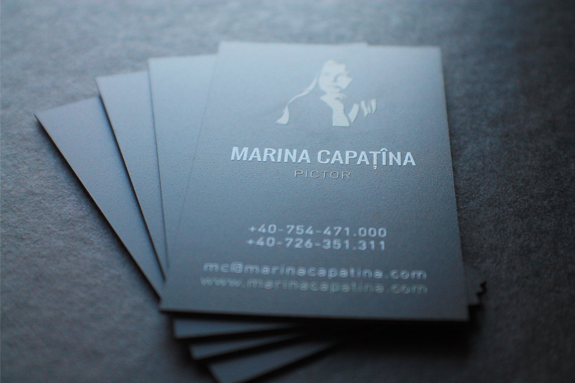 After cutting the plastic to shape, the text and logo are printed using the luxury finish Raised Printing. Contact details and the logo (self-portrait) are printed in white and metallic gold yellow, creating a refined contrast against the black plastic.
